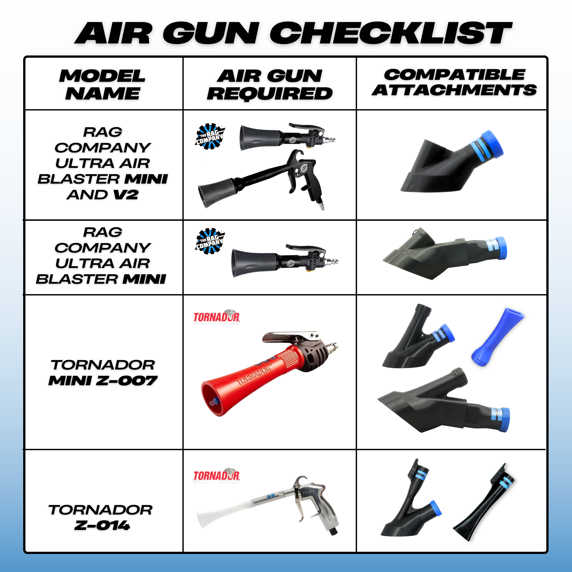 All of our attachments are model specific meaning that lookalikes and knockoffs may not work. So before you buy make sure you got the the correct air gun and attachment listed in the checklist image.